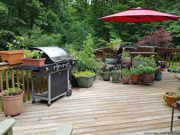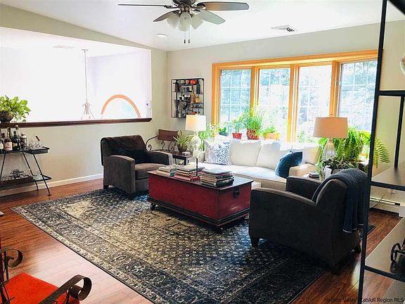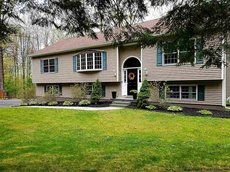 This Mint Condition home is sure to please! The contemporary design offers vaulted ceilings, double wide windows, over sized rooms & light filled space---- with air to breathe! You will never feel claustrophobic here! Features include quartz counters in kitchen and master bath vanity, glass tiled backsplash in kitchen, new sinks, newer stove and dishwasher, customized pantry shelving, new flagstone pathway to front door, newer flooring & 4 zone heating for energy savings! Extras also include a split bedroom plan, ample closets, central air on main level & finished walkout lower level with large family room with antique bar, den, full bath and laundry room. New leaf guards on the gutters make life easy! Enjoy the woodsy privacy, the large rear deck for outdoor relaxation & entertaining, perennial flower garden, raised bed vegetable garden & seasonal mountain views with sunsets! Very conveniently located just 15 minutes to New Paltz exit 18 & 20 minutes to exit 17 Newburgh. ideal commuter location. You won't want to miss this lovely home---nothing to do but move right in!
