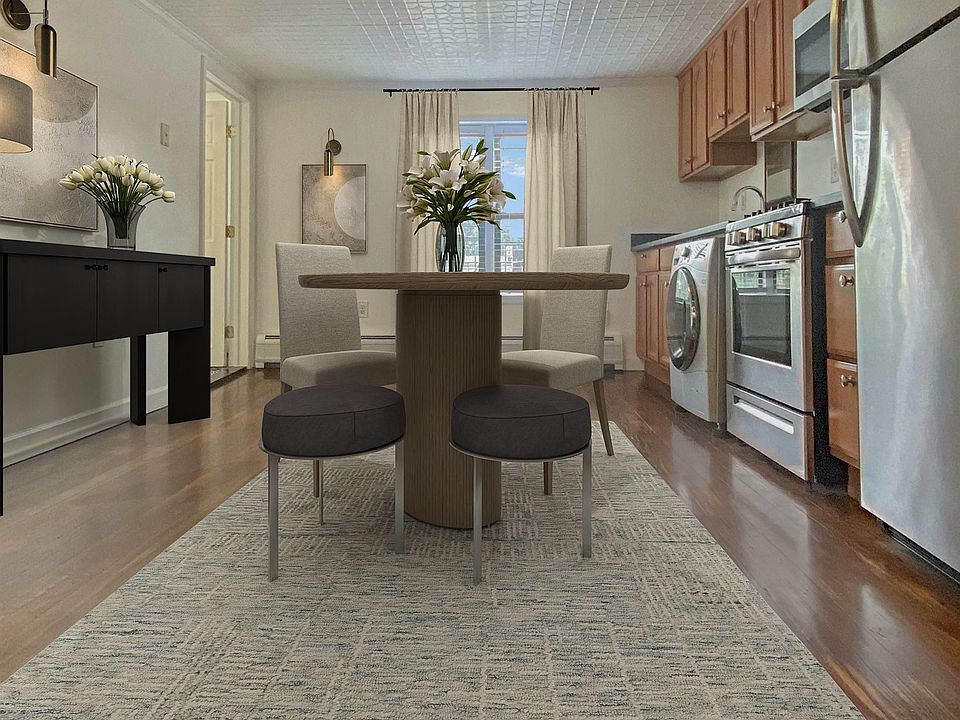 - Included: Dryer, Microwave, Oven, Refrigerator, Washer