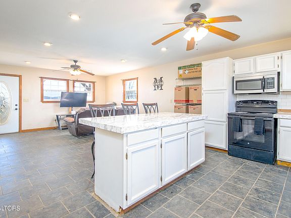 Take in the gorgeous mountain views from the deck of this Tazewell home with ZERO restrictions. The property includes 2 parcels totaling approximately 2 acres. Enjoy the deck that surrounds the house on 3 sides. If you're looking for privacy and country living where no one can tell you what to do on your own land, this is it! From the front door, the open concept kitchen and living area create the perfect gathering space for family and friends. The tile floor make clean up a breeze. The island/bar between the kitchen and living room creates additional storage, eating space, prep space, or the perfect spot to finish up homework (or your work project) before dinner. All kitchen appliances remain with the house. Upstairs, both bedrooms have beautiful wood floors and share the hall bathroom with full-size tub/shower and linen closet. Downstairs, you'll love everything about the walk out basement. It provides the perfect second living space when your Netflix binges aren't in sync with the other members of your household. Just off the 2nd living space is a separate room that would make an amazing exercise room, playroom, or a private work-from-home office. On each side of the laundry closet are a practical utiity sink and a fold-away folding table. You won't run out of storage with these 2 extra closet/storage spaces. Enjoy country living, no HOA, no restrictions, yet just 3 miles from Ingles grocery store and Walmart. The town of Tazewell has approximately 2500 residents and is just a 10-mile, scenic drive to nearby Norris Lake known for its deep, clean water. Tazewell is located a little more than an hour northeast of Knoxville, 45 minutes from Morristown, and 25 minutes from Middlesboro, Kentucky. Don't miss the narrated virtual tour!!