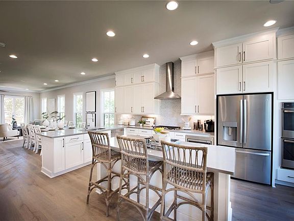 - Kitchen Features: Breakfast Bar, Pantry, View to Family Room, Stone Counters, Kitchen Island, Cabinets White