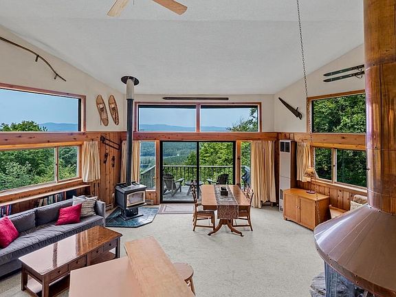 Sunsets and adventures await! Travel up a scenic back road to discover your mountain retreat with breathtaking views over Lowell Lake and the Green Mountains. Lowell Lake is a pristine state park, perfect for quiet boating, swimming, and hiking. As a member of the Powder Mill Association, you’ll have access to an extensive trail system for hiking, cross-country skiing or snowshoeing through the forest, as well as connections to the VAST trail network. Set on 1.7 hilltop acres this home offers seamless indoor-outdoor living with the Great Room opening to a deck, and each of the main-level bedrooms with balconies, all designed to capture the stunning views and take in our fresh Vermont mountain air. The lower level includes two additional bedrooms with bunk beds, a cozy den, a ski-tuning bench, and ample storage. Overlooking the Tri-Mountain area—home to Magic, Bromley, and Stratton Ski Resorts—and conveniently close to Okemo, this property offers a rejuvenating retreat to relax and immerse yourself in the natural beauty of the woods and mountains. Seller has set an offer deadline for all offers to be submitted before 4:00 pm 8/28/24 and requests a response deadline no sooner than 4:00 pm on 8/29/24.
