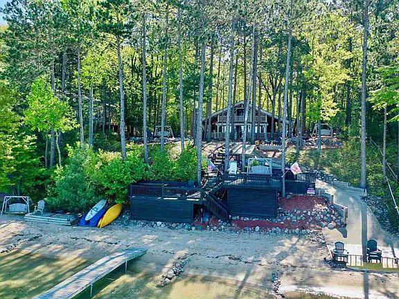 LOCATION IS PRIME on this Higgins Lake Lakefront! This slice of heaven on the high bluffs of one of the most beautiful lakes in Michigan! Bring your family to this unbelievable retreat. This historical home has been upgraded to perfection but the older charm is still intact. As you enter from the lake there is a wrap around deck, beautiful porch area that opens to living room with massive stone fireplace that creates the mood for your up north getaway. Unique custom wood decor from floor to ceiling with nooks and crannies everywhere. From the trap doors to the wine cellar this place is the most unique property you may have ever seen in the area. Perfect for a corporate retreat or just building family memories.