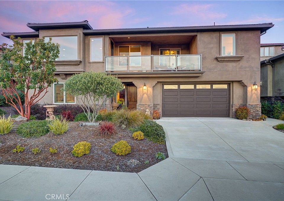 Discover coastal living at its finest! This exquisite Pismo Beach residence, nestled on the hillside of Las Ventanas Del Mar, offers breathtaking panoramic ocean and hillside views. The thoughtfully designed reverse floorplan brings the main living area upstairs, showcasing an inviting open concept with a gourmet kitchen featuring stone countertops and high-end appliances overlooking the dining and living area, complete with a cozy fireplace. Indulge in the comfort of the primary suite, boasting newly upgraded wood floors, high ceilings, and a spacious walk-in closet. The primary bathroom is a stunning personal oasis, featuring granite countertops, double sinks, a large soaking tub, and a walk-in shower. Step onto the covered balcony off the primary bedroom to relish ocean breezes, with a convenient door opening to the living area. The upgraded private backyard is a haven, fully fenced with hardscape stairs, patio, and lush foliage. Downstairs, two generously sized bedrooms boast high-end carpeting. The laundry room offers convenience with built-in storage, a stone countertop, and a stainless-steel sink. Luxurious finishes abound, including Alder wood cabinets and doors, European white oak wood floors, travertine tile, and an epoxy-finished garage floor with three-inch baseboards. Concrete stairs on the side of the house provide easy access to the backyard from the front of the home. Low maintenance is key, with hand-troweled stucco and attractive stone finishing the exterior walls. Perfectly situated close to shopping, restaurants, and the beach, this masterpiece was crafted by BDC Development Corporation, known for building quality homes with thicker walls for excellent insulation – an ideal complement to our impeccable coastal climate. Welcome home to a blend of elegance, comfort, and coastal charm!