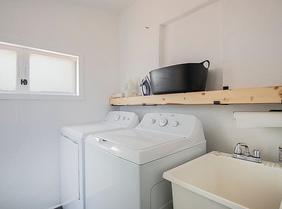 With the opportunity to do your laundry. Conveniently there is also a half bath (toilet and laundry sink) in the laundry room.