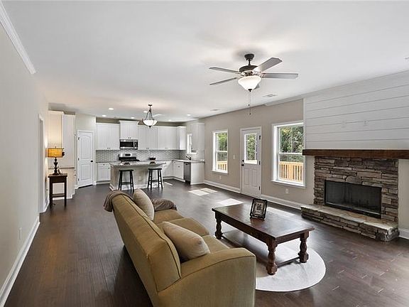 Beautiful Craftsman style 2 story home featuring the “Oconee” floorplan. Offering 4 bedrooms & 2.5 bath nestled on .50-acre lot of Swim/Tennis/Clubhouse community. Entering the home, you have formal dining area accented with Wainscoting and crown molding. Spacious open floorplan with lush hardwoods, stacked stone fireplace accented with shiplap and full view of the gorgeous kitchen. Upgraded 46” cabinetry, soft-close drawers, stainless steel appliances and walk-in pantry. Beautiful tiled backsplash and granite countertops complete this lovely area. Master on main appeals to all offering trey ceiling and crown molding. Luxurious master bath featuring separate shower/tub, double vanity, soft-close drawers, tiled flooring and large walk-in closet. Generous secondary bedrooms on upper level of home and bonus room perfect for media/home office/playroom. Full unfinished basement just waiting for you to finish any way you desire! Pointe North community is located just off Highway 61 and High Shoals Road in sought after school district of North Paulding County. Easy access to Cartersville, Dallas or Acworth areas. • Master on Main • Granite Counters • Lush Hardwoods • Tiled Baths • Soft-close Cabinetry • Stainless Steel Appliances • Full Basement • ½ acre Lots • 2-Car Garage