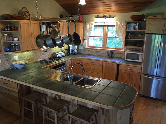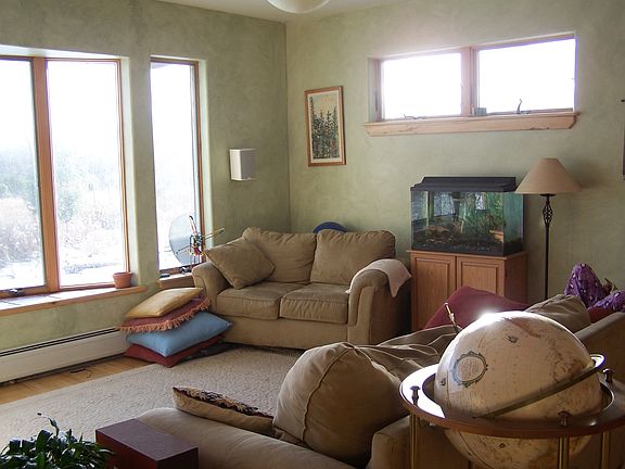 This beautiful custom built ~2100 sq. foot, 5 bedroom (2 in finished basement), 2.5 bath home offers spacious beauty and comfort in a lovely, child friendly co-housing neighborhood. Breathtaking distant views from the living rooms expansive bow window, 9 foot ceiling on main floor with open layout for entertaining, ceiling fan and lovely hickory flooring. Entryway has mudroom/closet/pantry, with swinging hickory doors. Custom kitchen has stainless steel appliances, gorgeous hickory cabinets, and reclaimed yellow pine vaulted ceiling. Master bedroom upstairs, has coffered ceiling and dual closets. Upstairs bedrooms have ceiling fans and gorgeous views from large south facing windows. Main floor and upstairs bathrooms are beautifully tiled. Finished lookout basement with 2 bedrooms and a full bath has radiant heat via lovely stained concrete flooring. Home includes 3200 Wp solar PV system updated in 2014, washer and dryer, 180 sq. ft. storage/utility space, back yard deck and side porch, large front porch with gabled roof. Many environmental and eco-friendly features: passive solar design, Anderson 400 Series double-pane windows, SIP (structural insulated panel) construction, ICF (insulated concrete form) foundation, HRV (heat recovery ventilator), highly insulated with R-24 walls (no thermal bridging) and R-50 blown cellulose attic space, dual-flush toilets. Rental includes assigned, covered parking space. Prospective residents must complete the neighborhood Membership process. Community members are expected to contribute 2-4 hours a week toward community work. Please contact us for more detailed information. EcoVillage residents have access to 174 shared acres, including trails through the fields and woods; playgrounds; basketball court; swimming pond; three organic farms; and adjacent land owned by Cornell Plantations, perfect for hiking, cross-country skiing, and snowshoeing. Common houses are available for the use of all, with dining areas, playrooms, sitting rooms/libraries, kitchens, guest rooms, and shared laundry facilities Owner pays water and internet