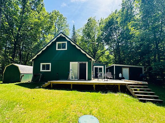 Your Northern Michigan Cottage awaits, here in South Houghton Lake Forest Estates. This 3 Bed, 1 Bath, Chalet style home has an open layout that allows the home to heat rapidly all winter long with its hot pellet burning stove. There is a generator in case your power goes out too. Snuggle up in a blanket & watch for wildlife from the newly built deck! You will live among Deer & Turkey in this quiet subdivision. Features new electric, water pump & water heater. New septic drain field (2022). New steel roof (2022).