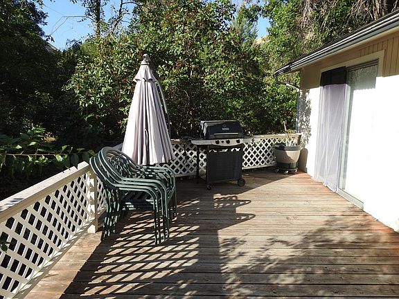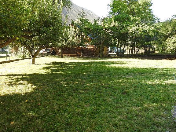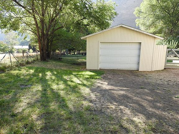 Home has a large step down living room, nice kitchen with 2 large bedrooms. The master bedroom has a sitting area and private bathroom. There is a "walk in tub in the other bathroom. There is also oversized detached one car garage with work area. There is a large deck at the back of the house. The yard features lawn and fruit trees, Water and sewer and irrigation water are Rapid River Subdivision community utilities. The water system is new and the sewer is in compliance.