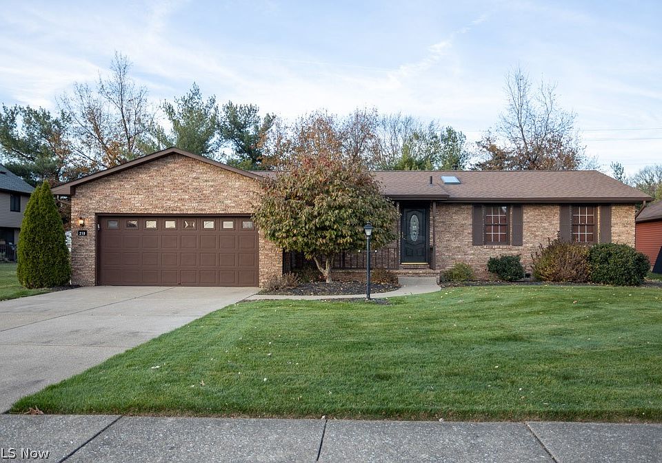 Priced to sell in a $300,000 neighborhood! Three bedroom all brick ranch. Brick porch in front, 2 year old deck off family room slider. Electric fireplace in family room. Skylight in main bathroom. Very nice shower and commode in basement bathroom. Very clean and neutral walls & carpet. Bay window in dining area. All appliances remain. Professional pleated shades throughout home. Sprinkler system, security system. Nature Stone garage floor & steps into house.