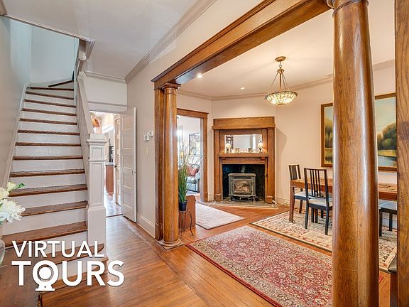 Amazing outdoor space and stunning hardwood with this 3 bd / 2 ba DC townhome! Built in 1917, this home has been impeccably maintained and upgraded to feature an open concept and finished basement! Pass the covered front porch on your way in and instantly notice the warm and inviting hardwood - from the floors to the doorways! Crown molding, light earth tone walls, and natural lighting add elegance and brightness. A formal dining room sits to the right of the foyer with a stained glass light fixture and gas insert fireplace! Flow into the living room, where there is a ceiling fan and double door access to the deck. The kitchen is equipped with granite countertops, tile backsplash, stainless steel appliances, and wood cabinets. There is also a center bar island and a glass door that leads to the deck! Upstairs, two of the light-filled and carpeted bedrooms access the balcony, while the other bedroom has a built-in desk and shelving - perfect for a WFH office. The home's two bathrooms contain shower/tubs and classic black+white tile wall surround. Lower level bath comes with Whirlpool tub; one is upstairs and one is on the lower level. All the way downstairs, you'll see painted exposed wood beams and brick walls. There is also a laundry closet, storage area, and an open room that can be used for guest accommodation or a secondary living space! Head out the glass door to reach the rock landscaped backyard, where you can continue entertaining and garden along the fence! This space is shared with the private two car carport that has an electric garage door. Located near shopping, restaurants, and everything DC has to offer! Easy access to hwy 1 and metro stops. Buyer should verify all information.