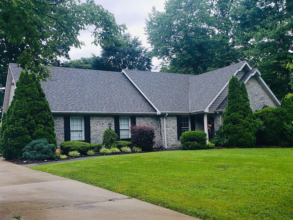 This elegant home features the top of the line finishes. The main floor has an open floor plan with a large living room with fireplace, kitchen and dining room. KItchen has high end cabinetry and a large walk in pantry. A 240 sqft home office is off the living room with a private outside entrance. Two large bedrooms and a full bath with a new tiled walkin shower are in the main. a 970 sq ft 3 car garage finishes out the first floor. Th upper floor is one very large master suite. huge bedroom, large master bath and spacious walk in closet. THe upper master suite has a private deck and separate entrance. The grounds are masterfully landscaped with mature trees, a gazebo and outside storage building. The back yard is under chin link fence. The beautiful rock exterior of the just tops of this outstanding piece of property.