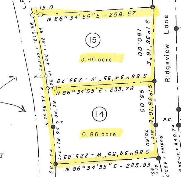 Two Lots (14/15) in Ridgeview Heights,with 255' Frontage on Ridgeview Lane, just minutes from the Downtown Area.