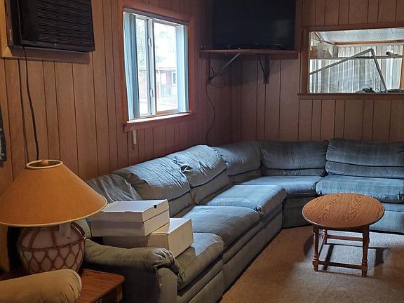Nestled amongst the pines but NOT in a community near Pecks Pond and picnic area is this spacious 2 bedroom 1 Bathroom home complete with large eat in kitchen and big Family/Living room with vaulted wood ceilings and a separate den for informal gatherings along with a screened in back porch big awesome Garage with its own circuit Breaker panel box and nice man cave loft room with window. Needs to be cleaned out and is in need of some cosmetic TLC. Metal Roof. Road maintenance agreement of just $120 per year with garbage dumpster. Full price only at this low price. No FHA