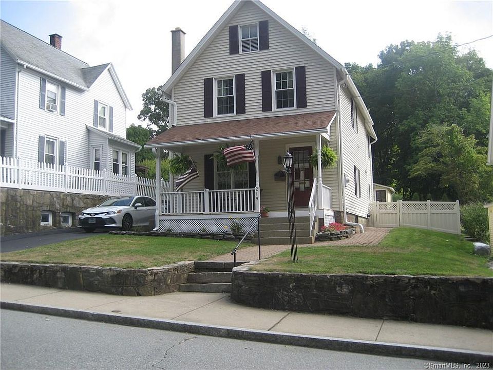 Wonderfully and meticulously restored victorian with 3-4 bedrooms and 2 full baths. Enjoy relaxing on the front porch or on the back patio with access to the family room. First floor consists of a Living room with wood stove for cold winter days and dining room with a dry bar area behind stained glass doors. Kitchen has custom oak cabinets and a large pantry closet, family room has french doors leading to the paver patio. A remodeled full bath is also on the first floor. Second floor has a spacious primary bedroom with a bay window and a walk in closet. Second bedroom has an electric fireplace with heat and a built-in entertainment area. A third bedroom and a full bath complete the second floor. Third floor has a finished bonus room with 2 skylights that can be used as an office, bedroom, playroom etc, and attic for storage. Most exterior windows are Anderson double hung windows. New roof and leaf guard gutters were installed in 2014. 2 zone central air system was upgraded in 2017.