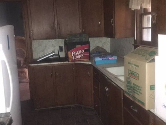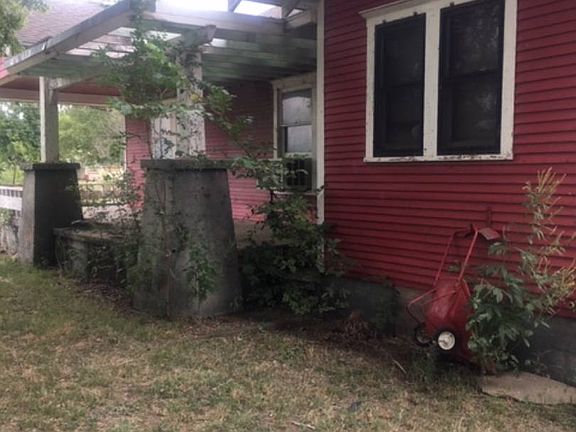 2-3 Bedroom, 1 BA with a kitchen nook, formal dining room, living room all located on a corner lot in a very small town. Some rooms are carpeted but the entire house has hardwood floors. All oak trim. Kitchen has ceramic tile on floor and the bathroom has an old fashioned cast iron tub. Unfinished basement with outside entrance. Kitchen plumbing was new in 2011. Roof was new in 2015. House is cooled with a large window unit and the heat is by floor furnace and is on propane. Home is serviced by a septic tank and has the water supplied from a well on the property. House has a large covered porch to the front and partially down one side. Would make an excellent rental property but needs some work..