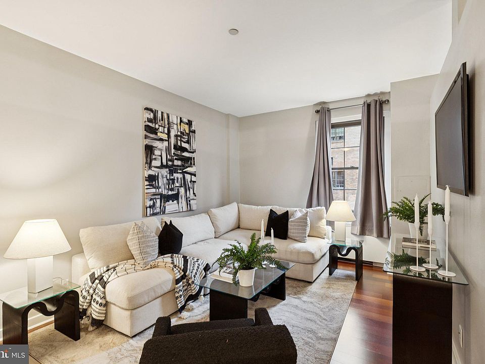 Sunny one bedroom with northern city views at Parc Rittenhouse right on Rittenhouse Square! Enter through a foyer with deep coat closet into the open great room boasting an oversized window and ample space for everyday living and entertaining. Adjacent is the fully equipped kitchen with flat panel cabinetry, granite countertops, stainless steel appliances, tile floor, and a passthrough overlooking the living area with a breakfast bar. The generously sized bedroom enjoys another oversized window, large wall closet, and use of a marble-appointed hall bathroom with sleek vanity and tub shower. There are hardwood floors in the living area and a combo washer/dryer in the kitchen. Residents of Parc Rittenhouse enjoy world class amenities and services including a 24 hour doorman; an amenities suite that includes a brand new state-of-the-art fitness center and resident lounge with pantry; media room; outdoor rooftop pool club with a large pool deck, full size pool, kids pool and hot tub; garage parking below the building for an additional fee; and two amazing restaurants on the ground floor, Stephen Starr’s Parc and Via Locusta