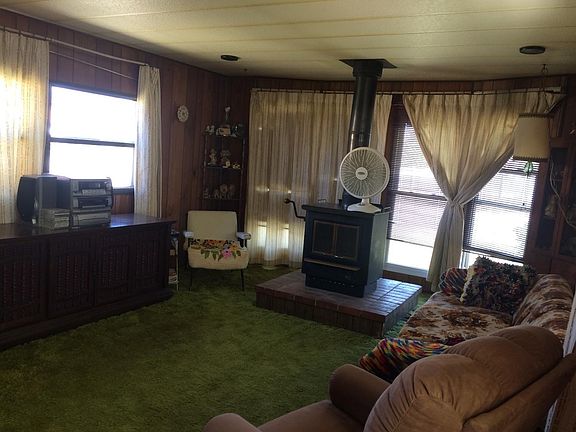 This 2 bedroom manufactured home has a wood stove and lovely bay window in the front room. Kitchen appliances stay. This property features a large garage, mower shed, covered back porch and storm cellar. Motivated Seller says sell.
