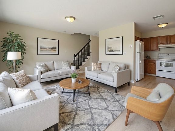 Welcome home to updated townhouse style home! 2 bedrooms, 1 1/12 baths, large open space combo living room/dining room area w/slider access to your own private balcony! Freshly painted. Brand new professionally installed natural wood laminate flooring on the main level AND carpet on the stairs & upper level. Tiled bathrooms floors. An abundance of natural light entering through the oversized Anderson windows & slider access. Tastefully matching white appliances & hood in the kitchen. Granite countertops in the bathrooms. Oversized large walk-in bedroom closet w/built-ins. Stackable washer/dryer in the upper level closet. Brand new AO Smith ProLine Commercial Grade water heater installed 7/28/2023. Large storage closet in entrance foyer. 100 AMPS of service. One assigned parking spot that is conveniently located CLOSEST to the entrance door access of North Building! 2 additional parking passes. Special assessment is covered by the owner. Owner/tenant ratio for complex is 55/45 (%). Storage Unit is in the covered garage area. In-ground pool (Not open until later in future), visitor parking spots available & conveniently located in an UNBEATABLE LOCATION minutes to an up & coming downtown area, local train station for easy commuting, 2 beautiful large acre parks, dog park, local amenities & businesses, popular restaurants, workout facilities, major retailers, bakeries, recreational areas, highway access & more! Don't miss this opportunity to make this home yours!