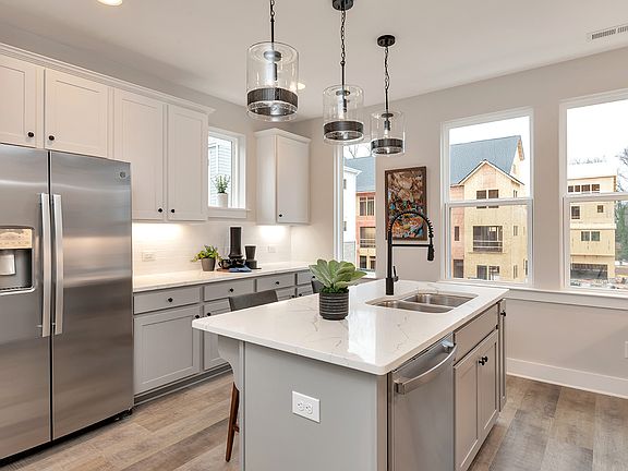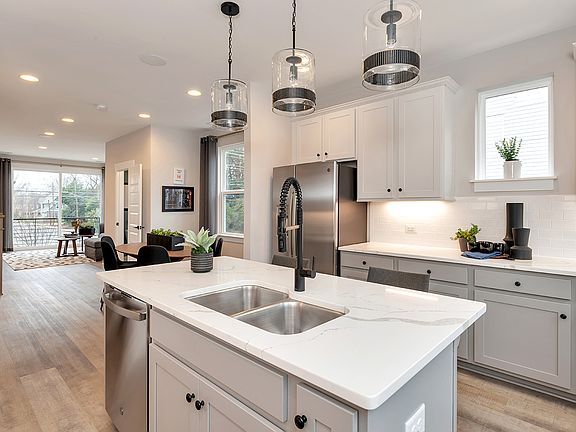 The Sorrento is an end-unit 4-story townhome with a 1-car garage, flex room and powder room on the first floor. The second floor includes the living room, dining, powder room and kitchen. This spacious kitchen features bright white perimeter cabinets, accented with a large deep celtic green island, Align brushed gold pulldown faucet, double trash pullout, under cabinet lighting, quartz countertops, gas range and stainless steel counter depth fridge. On the third floor you will find the premier bedroom with a fully tiled ensuite bath, secondary bedroom, full bath and the laundry closet with a stackable washer and dryer combo. The 4th floor features a rec room space with an additional powder room and a beautiful rooftop terrace with trex decking. If you are looking for a home with all the bells and whistles with seasonal views of uptown, this is the home for you! Estimated Move-in Date: Feb/Mar 2023