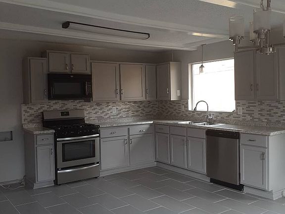 This 3 bedroom, 2 bath home has lots of Charm! It is an older home that was recently remodeled. The kitchen has beautiful counter tops and back splash tile. The kitchen has a new Frigidaire gas stove with a middle griddle burner, also a new Dishwasher and builtin Microwave. There are lots of cabinets , new sink and faucet and adjoining is the large dining area. Beamed ceiling, new light fixtures. Also in this adjoining area is a new air and heat unit in the wall. The 2 bedrooms and the Living room have new laminated flooring, and carpet in the master bedroom and ceramic tile in baths, laundry room and front and back entries. The living room has crown molding, and the back entry can be a great office or mudroom! Off the back entry is a new deck too. The front entry is spacious with a new light fixture and beautiful front door. The master bath is all new with a granite top vanity, tiled shower and tub. The large laundry room has ceramic tiled floor and off of it is the second full bath that has a new vanity and light fixture. There are several radiant gas heaters and air conditioners.Outside the large yard is fenced for those Kids or pets or both !! There are 2 carports and a storage building between them. All for $94,500.!!
