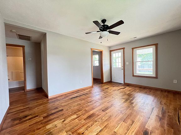 Welcome to this charming, completely renovated bungalow in the heart of Bolivar! Boasting 867 square feet, this two bedroom, one bathroom home has been nicely updated, offering a perfect blend of classic charm and modern convenience. Step inside the central air conditioned home to discover refinished hardwood floors, fresh paint, and new solid wood doors throughout. The spacious living room welcomes you with its generous size, perfect for relaxing or entertaining guests. The large updated kitchen features updated lighting, refinished cabinets, a stove and refrigerator that stay wiht the house! The home also has vinyl siding and new windows, providing a bright and inviting space. A separate dining nook off the ktichen offers a cozy spot for enjoying meals or setting up a home office. On the west side of the house, you'll find two bedrooms and a full bathroom, all sharing an alcove that adds a touch of character to the space. The back entry opens onto a 10x12 deck, conveniently adjacent to the parking areas. This area provides plenty of landing space for dropping off coats and bags, making it easy to transition from the outdoors to the comfort of your home. The back hall leads to the laundry/storage area and opens to the dining nook/desk area, creating a seamless flow throughout the home. Located on a small corner lot, this home offers views of Cribbs Youth Park, Splash Pad, and pickleball courts, making it ideal for outdoor enthusiasts. Don't miss this opportunity to own a beautifully renovated bungalow in a prime location. Schedule your showing today!