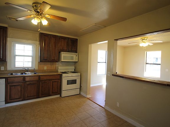 All remodeled and ready to go! Cute, Clean bungalow home in-town Blanchard. Large lot, backyard access and alley. Wood laminate floors in living and bedrooms, beautiful new tile in kitchen/dining, utility and bathroom. New vanity/sink, toilet and fixtures in bath. Freshly painted interior. Custom built cabinets in kitchen. Wide open kitchen has dishwasher, disposal, microwave and stove. Huge pecan trees put out wonderful pecans for those holiday meals. Large outside storm shelter. Check this precious home out today! Owner is related to listing realtor.