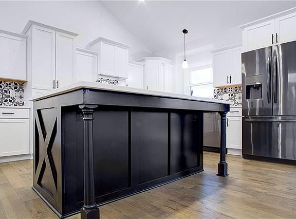 Classy kitchen with huge island/bar & Quartz tops.White shaker soft pull cabinets and upgraded black SS appliances included in list price.Vaulted ceilings in the living, dining, kitchen & mstr bth.Floor to ceiling shiplap fireplace in the vaulted living area.Designer master bth with freestanding soaker tub, tile shower, and huge double vanity.Walkout finished bsmt has a 2nd family room with slider door leading to a patio, 4th bdrm & 3rd full bath.12x15 rear deck. 3car garage with side entrance.Sod on front & sides. Some photos depict previous builds of the same floor plan.