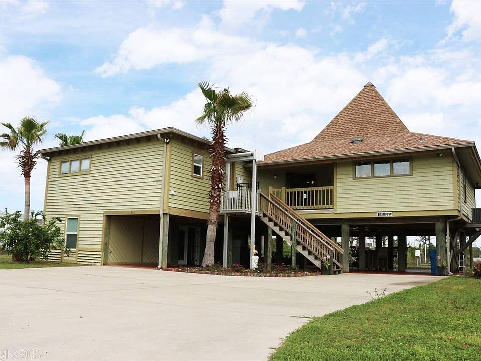 OVERSIZED FULL LENGTH DECK, GREAT VIEWPOINT FOR SUNSETS. CONCRETE/BRICK PARTY AREA BELOW W/STORAGE ROOM and GAMEROOM. ELEVATOR. PIER W/LIFT. OPEN LIVING AREA W/Vaulted WOOD CEILINGS. PILINGS & SUPPORTS MORE SUBSTANTIAL THAN CURRENT REQUIREMENTS. 2 AC SYSTEMS. NEW POOL. SQ FT TO BE VERIFIED.