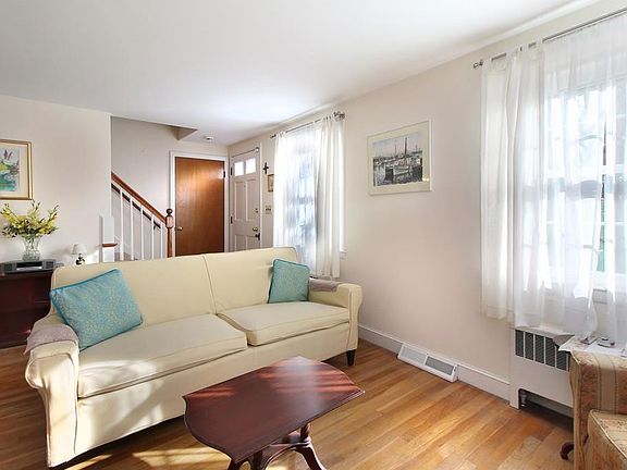 Move in condition and meticulously maintained by long term owner. White picket fence surrounds this adorable home. Hardwood floors throughout, newer windows, fireplace living room, first floor master bedroom has access to addition of "extra room" offers multiple uses, loads of windows, fully enclosed yard, two nice sized bedrooms on 2nd floor, young roof, young fhw gas heat, and Central Air! Convenient location, bus stop right outside your door, walk to grocery store, quick highway access. This little house is a gem! You will love it! No open houses, by appointment only with notice (after 10:30am please).