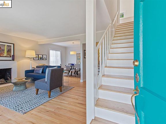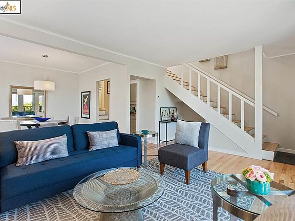 Stylish Upper Kensington Contemporary Home with stunning views & modern style! This two-story split level 3 bedroom, two bath property offers sublime modern living. The expansive Master Suite occupies the entire top floor & features a sitting area, walk-in closet, cathedral ceilings, & its own private deck facing the beautiful San Francisco Bay. The updated Master Bath offers a walk-in shower & a sumptuous free- standing tub. On the main floor, the dining area, living room & deck are awash in light with wonderful views of the bay. The updated kitchen is stunning in design & efficiency. The two generous & bright bedrooms on the next half level are separated by an updated bathroom. Each bedroom has separate access to the rear patio, a private oasis of generous planting beds, fruit trees & terraced gardens. The one car garage has high ceilings, & great storage possibilities. There is an off-street parking area for one car. Close to Express SF and BART bus stops.