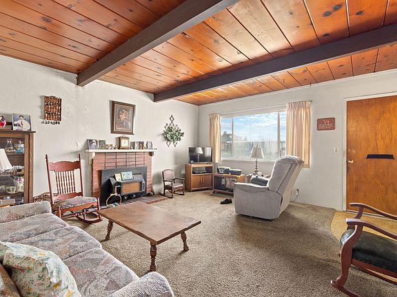 Three bedroom, two bathroom on large lot in Fortuna. Interior of home has a fireplace and wall heater, tiled tub and shower, and wood ceilings. Attached garage with washer and dryer hook ups, near schools, and vinyl siding all around. Enjoy the covered front porch at the end of the street for those fun summer evenings.