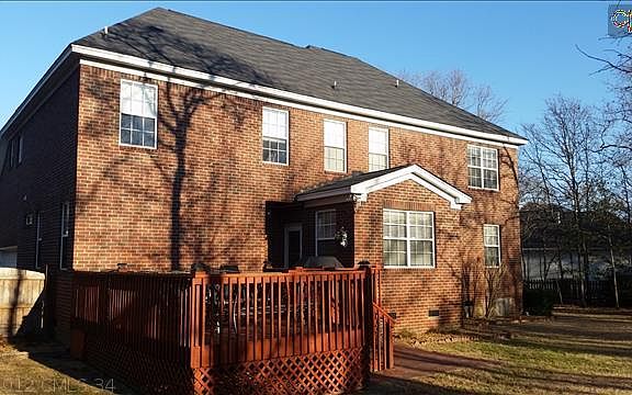 Spacious all brick home on 3/4 acre lot featuring large fenced-in backyard with natural area offering privacy. Home includes a large downstairs bedroom adjacent to full bathroom perfect for guests or live-in relative. Kitchen has expanded eat-in area and walk-in pantry. Hardwood floors and heavy crown molding in living, dining and two story foyer. Large family room with gas fireplace opens to kitchen. Upstairs features office/6th bedrm, three bedrooms and oversized master bedroom. The exterior of this home has great curb appeal, sitting atop a gentle slope with professionally landscaped grounds and includes a 300 square foot L-shaped deck in the fenced backyard--Perfect for entertaining. All appliances stay.