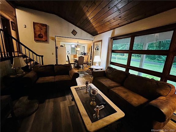Country Brooklyn Split level w/ fire-placed living room w/ wood stove insert and vaulted tongue and groove ceiling leads to vaulted large dining room or use as a family room. Enclosed screen porch to enjoy your Fall evenings. Lower level has a heated room w/ full bathroom and a laundry room. Applianced eat in kitchen and 3 bedrooms and a full bathroom on upper level. Slate entry w/ open porch for your rocking chairs. Generator hook up. Sheds convey. Needs tlc and paint.
