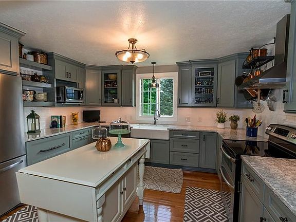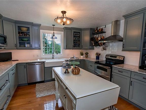 Stunning, Extraordinary Ranch Home on 2.3 lovely landscaped acres, AG Schools! 4 yr old improvements include high quality steel siding and roofing, stone exterior, windows, cement driveway, walkways, stamped concrete steps and porch, patio area and gazebo! Gorgeous less than a year old Kitchen with quartz counters, loads of soft touch cabinets, farm sink, new lighting and fixtures, Stainless appliances! Lovely hardwood flooring in the main rooms and Master Bedroom, classic newer crown molding, main level full bath updated 6 yrs ago, living room has stacked lava rock propane fireplace and bay window, lower level has large family room with stone propane fireplace, an ample party kitchen, full bath with walk in shower, laundry with storage room, an extra room for storage w/2-275 gal oil tanks, finished 12x12 with closet is bedroom 4, used as exercise room, add barn doors if you like! Covered large back deck, back patio, great yard! Home Warranty Avail. Convenient to 119, WV line, RT 43!