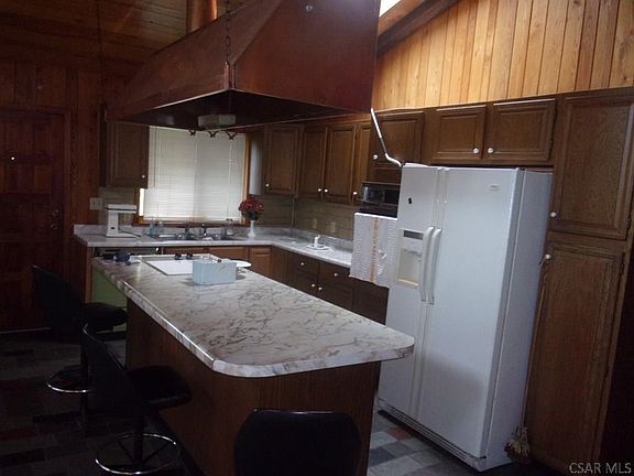 Well built contemporary style home on a quiet street in Meyersdale. The top floor has two bedrooms, a full bath, an open kitchen, living room and dining room with cathedral ceiling. The lower level has a large open family room, third bedroom, full bath and a work/utility room. The basement has radiant floor heat and a woodstove. The house has gas HW heat and 2 bedrooms with electric. Lots a space for outdoor living on the large front deck over a masonry patio and a side patio. The detached garage has a newer metal roof but needs some TLC.