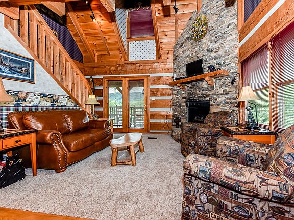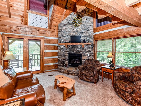 OWN YOUR OWN COMPLETELY FURNISHED LOG CABIN IN THE SMOKIES WITH BEAUTIFUL MTN VIEWS GALORE!! LISTED LESS THAN SELLERS PAID FOR THIS BEAUTIFUL CABIN IN 2008- THIS MULTI-LEVEL 3 BR, 3 BATH CABIN FEATURES OVER 2000 SQ FT & AMENITIES TO INCLUDE: OPEN GREAT ROOM (W/NEW CARPET, STONE GAS FIREPLACE, MTN VIEWS & INCLUDES ALL FURNITURE), OPEN KITCHEN (W/DINING TABLE, APPLIANCES & DISHES THAT ALL STAY!), MASTER BR ON MAIN (W/NEW CARPET,KING BR SET LOG FURNITURE, LOG WALL & STEP-UP JETTED TUB W/STAIN GLASS WINDOW), MASTER BATH (W/TILE FLOOR & WOOD CEILING), DEN/BONUS ROOM (COMPLETE W/FURNITURE, TV & MTN VIEWS), 2ND BR (W/WOOD CEILING, WOOD FLOORS & KING BR SET THAT REMAIN), GUEST BATH (W/WOOD FLOOR & WOOD CEILING), BASEMENT REC. ROOM (W/POOL TABLE, TABLE HOCKEY, LOVESEAT & CHAIR THAT ALL REMAIN), 3RD BR (W/LOG FURNITURE THAT STAYS), 3RD FULL BATHROOM, COVERED BACK PORCH W/HOT TUB & PANORAMIC MTN VIEWS!!