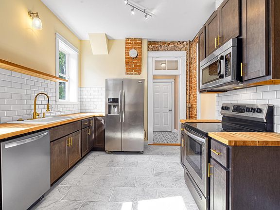 A stunningly restored historic home in the highly desirable Extended Historic District of St. Charles! This terraced homesite originally built during the 1890's features a full brick facade with fresh exterior finishes. This duplex includes a living room, dining room, kitchen, and half bath on the main floor, as well as 2 bedrooms and full bath with double vanity on the second floor. Interior highlights include 10-foot ceilings on the main level, hardwood floors, exposed brick, kitchen with butcherblock counters, tile backsplash, and stainless-steel appliances and hook ups for a washer/dryer on main level half. Situated within 2 blocks of Historic Main Street in St. Charles, this home provides easy walking access to the Katy Trail, many shops, a variety of restaurants, parks, and schools. Also, enjoy the nearby Streets of St. Charles Entertainment District and yearly celebrations and festivals. Plus, easy access to Highways 70, 370, 94 and 364 and Lambert International Airport is approximately 8 minutes away. THIS RECENTLY FULLY REMODLED HISTORIC DUPLEX IS A MUST SEE FOR THOSE WANTING TO LIVE IN A QUIET NEIGHBORHOOD BUT CLOSE TO FUN NIGHTLIFE AND THE OUTDOORS! Owner pays for Water, Sewer, and Trash Services. Renter pays for Electricity. 2 Space off-street parking, no smoking