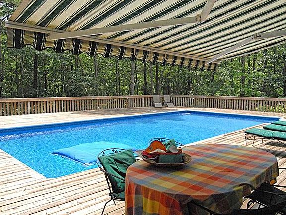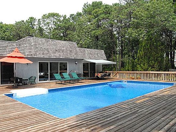 This sunny three bedroom and three bath Contemporary is set on 1.5 acres with an open great room, kitchen, dining room and stylish furnishings. Sliders open to the expansive deck and heated pool. MD-LD: $45,000 June/July: $25,000