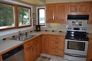 One of the most unique homes on the lake under 500K. Located on a knoll with breathtaking lake views in a park like setting with mature hardwoods & nostalgic stone walkways to the lake & unbelievable, colorful landscaping. The home is recently remarkably renovated with an upscale kitchen with stainless appliances, oak cabinets, tile backsplash and floors. Baths are unique with tile floors & walls,
