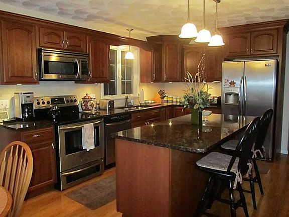 Set 200' off road, this farmers porch colonial has everything! Central a/c and vac, hyroair,hardwoods,granite & stainless kitchen, master suite PLUS a 45X54 heated garage w/12' ceilings,chicken coup,4 stall pole barn on 4 ac. NOT A DRIVE BY!