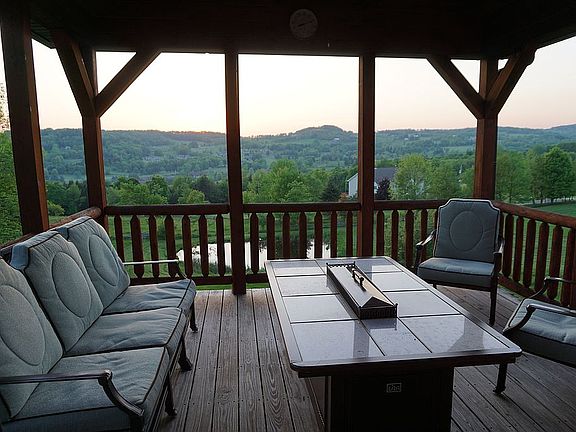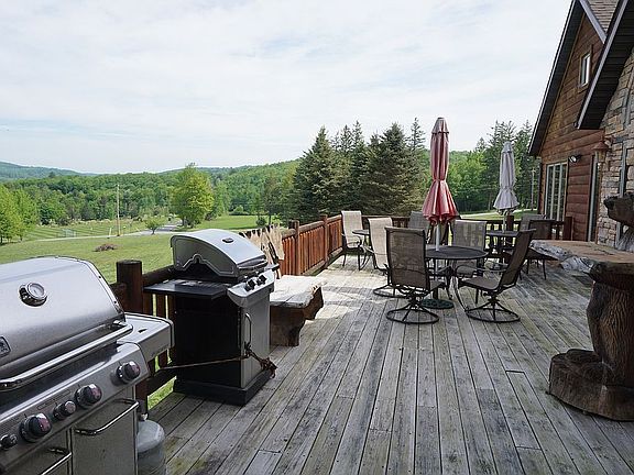 Custom Built home! featuring 5 BRs, 3.5 BA loaded with charm and character! Includes a newly Renovated 4 BR, 2.5BA Cottage - 2 homes on 6 acres of land! (Willing to sell homes separately). Bring the extended family and/or friends. A Formal Living Room as well as a Living Room with a Gas Fireplace. Wood floors throughout 1st floor of home. Large Kitchen with SS Appliances & Granite Countertops/Island & Gas Cooking. Spectacular views from a Covered Deck as well as an Open Deck overlooking a Pond! Master Bedroom w/Master Bath on 1st Floor. Beautiful woodwork throughout home. Relaxing and fun for the entire family - A Game Room includes Wet Bar w/Refrigerator/Ice Maker & Gas Fireplace plus another Game Room for children. Surround Sound throughout home. Has CAC, 6-Zone Heating and 4-Zone Radiant Heating. Energy Efficient CAT5 Anderson Windows, Central Vac, 3-Car Heated Garage with 2 Car Lifts as well as additional 1.5 Car Garage on Lower Level. Plenty of Parking. Located close to Villa Roma Resort, Home/s can be purchased Furnished or Unfurnished. Special offer - Owner will throw in a 2 BR Timeshare week at Villa Roma with sale of home. Also close to Delaware River for kayaking, canoeing & tubing, Bethel Woods Performing Arts Ctr., Resorts World Catskill Casino and Jeffersonville. Call me for details...too many amenities to list! Call Joe - 516-297-1006
