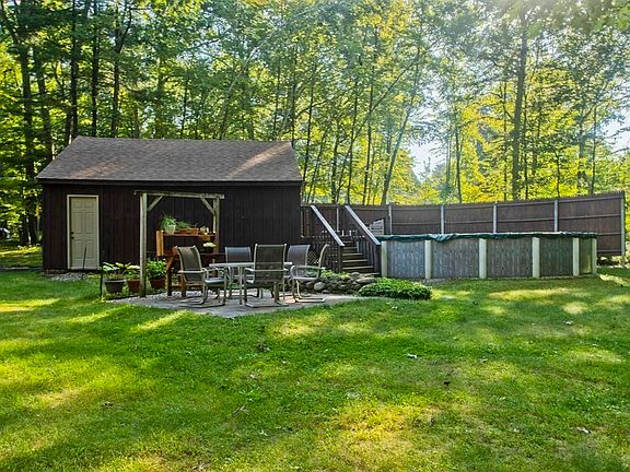 A peaceful country setting for this lovingly cared for 4 bed, 2 bath Gambrel Colonial on over 3 acres of land. This home features space to fit everyone’s needs; from a remodeled kitchen with a center island to a large living room with a cozy fireplace. A separate dining room to use for larger meals and get-togethers, and a first-floor bedroom and full bath. There is also a sunroom addition with a spiral staircase to the second floor which offers an office/loft area. The second floor offers 3 additional bedrooms and a full bath. Don’t miss the finished walk-out basement with a spacious cedar closet. Outdoors you will love the large deck, established perennial gardens, drive-under storage area under the sunroom, a detached 2-car garage, and above-ground pool with sundeck for those warm summer days. This home also has a brand-new septic system. Come take a look at all this house has to offer.