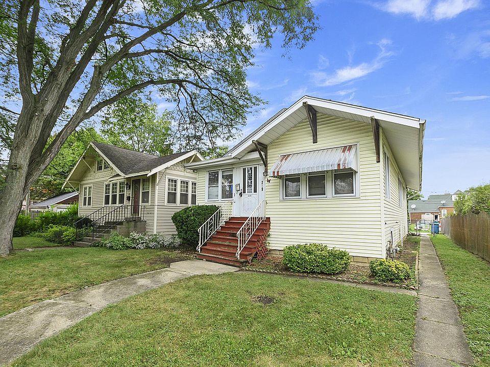Cheaper than rent, and perfect for a first-time buyer. This move-in ready home has hardwood floors and a backyard that perfect to play or barbeque in. This house has loads of potential. Parking spaces in rear of home. Small concrete patio, electrical upgrades 6 ears ago, windows 10 years old, roof over 15 years, gas heat. Front enclosed porch. Cute as a button.Seller says as-is, however the village inspection shows minor repairs. See under additional info.