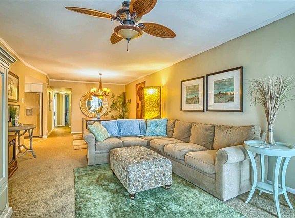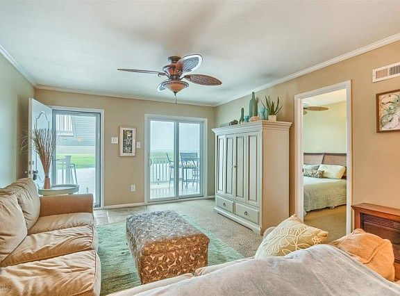 Enjoy the stunning, unobstructed bay views for miles from this 3 bedroom, 2 bath condo! This bright and airy condo features a spacious floor plan and comes fully furnished and professionally decorated. The wonderful living room has a slider to the private balcony, ceiling fan and neutral carpet and paint that extends to the dining area. The gorgeous, updated kitchen shines with granite counters, under mount sink, glass front cabinets, newer stainless steel appliances, large tile flooring, and built-in wine rack. Three roomy bedrooms are serviced by 2 full baths. Full laundry/utility room with washer and dryer for added convenience. Take in the sunsets from your private balcony overlooking the water or take a stroll to the new dock and bulkhead where you will find your own slip perfect to dock a boat or jet skis. A lovely association pool with deck surround and plenty of lounge chairs and more views of the bay. Off street parking with guest parking on site and a municipal lot next door. Major exterior renovation just completed! Located in a quiet set back area on the bay and within walking distance to beach, restaurants, stores and more!