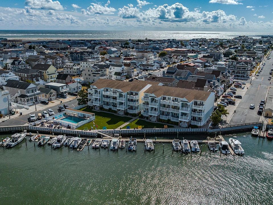 Top-floor, bayfront living at The Promenade in North Wildwood! This 3-bedroom, 2-bath end-unit condo offers the perfect combination of privacy, views, and coastal lifestyle. Enjoy your own assigned boat slip, heated pool, and both front and rear decks—ideal for watching sunsets over the bay. Inside, soaring vaulted ceilings in the living room create a bright, airy feel. The private front deck (no upstairs foot traffic) makes this unit one of the most desirable in the complex. Recent updates include updated baths, newer appliances, flooring, paint, a 2-year-old heat & A/C system, and more! The Promenade is a well-maintained waterfront community featuring a newer bulkhead, boat slips, grills, storage units, and assigned parking, with additional guest spots available. Pet-friendly for owners, with a strong HOA that covers insurance, exterior maintenance, common area utilities, pool, and trash. Whether you’re boating, lounging by the pool, or walking to North Wildwood’s restaurants and nightlife, this is shore living at its best.