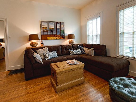 Over 100 5 star reviews on VBRO. This home attracts renters year round! For bachelorette parties, beach parties, reunions! Sleeps 8+ A stone's throw to everything--Franklin Street, Lighthouse mall, restaurants, bars, coffee shops, art galleries, farmers markets and the train to Chicago are minutes away from your front door. Open that door to a large, sunny three season porch and enter an easy-going space just waiting for you to put your feet up. Continue in and find comfort and convenience in this well-appointed home. Large gathering rooms, eat-in kitchen, back deck with gas grill, huge fenced-in yard with stone firepit. Three bedrooms and two updated baths sleeps 10 comfortably. Less than 1/2 mile to wide open beaches, zoo, dunes, state parks. Most furniture included - excluding some art, Rec room chairs and a few items with sentimental value. Property is dual zoned for residence and business