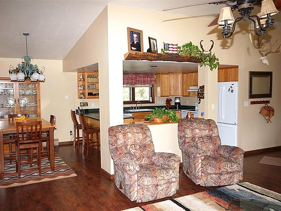 Tremendous location for beautifully remodeled home a few blocks from down town Ennis & the Ennis Schools. The upstairs has been completely remodeled opening the walls, tiling the floors & showers (jetted tub in the master), newer counter tops, newer flooring. The Madison Mountain views are brought into the home via floor to ceiling eastern windows or step outside on the southern deck (just off of the dining area) to see those views and also the view of the pond and creek. Lower level has a large family room w/ a sports bar, laundry area, & 2 car garage. There is a wood burning stove upstairs and another propane burning stove in the basement backed by unique rock work & rock hearth. Mature trees & landscaped fenced yard that are irrigated by a private well. There are four more lots (can be purchased separately) lying east of this home. Location, the easy convenience to school & town.......Well, this house - it just has it all!