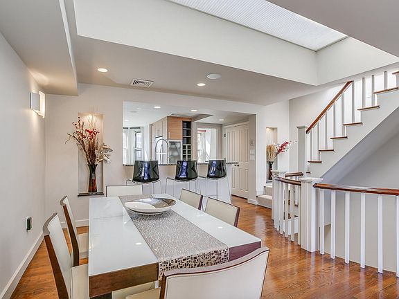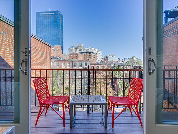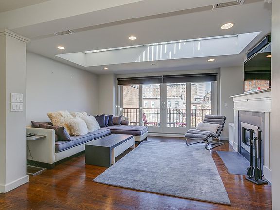 Rare triplex conveniently located steps from the southwest corridor. Enjoy 3 spacious levels with a private roof deck and 2 separate balconies. Parlor level includes a wet bar, living area, a bedroom with en-suite bath, custom built-ins and a private balcony. The 2nd level has a spacious master bedroom with a newly renovated en-suit master bath. The third bedroom has full bed and its own en-suit bath. Bonus office space completes this level. The penthouse floor opens up to a bright living/dining room with gas fireplace and two skylights. Stainless steel kitchen offers double wall oven, wine fridge, convenient breakfast bar. Second balcony on this level. Soaring ceilings and hardwood floors throughout. In-unit stacked washer/dryer. Breathtaking private roof deck with sweeping 360 degree views of the city. The home is fully equipped with Sonos, Central air and security systems & 1 off-street heated parking space is included. Available flexible
