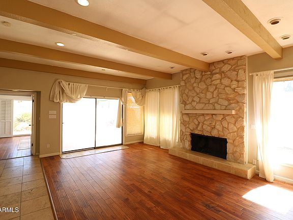 Located in the Missouri Square community in Uptown Phoenix, this 2 bedroom, 2 bath home features a den/office with adjacent atrium, spacious living room with stone fireplace & decorative wood beams, formal dining room & breakfast room, travertine & laminate wood flooring, walk in closet in the primary bedroom, double sinks in the primary bathroom, indoor laundry room, private front courtyard, 2 car garage, N/S exposure, rear covered patio with Saltillo tile flooring, additional covered patio, pool, and more!