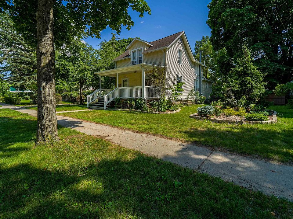 Charming home and just a few blocks to downtown, CMU and Millpond Park. The charm starts with the covered front porch and of course a swing for enjoying Michigan's summer nights. There are 4 bedrooms with 3 of the bedrooms and a bath on the upper floor and 1 bedroom that is currently being used as an office on the main floor which leads out to a covered and open deck area and into a beautiful landscaped fenced in back yard. Sellers have upgraded the electric, put in new carpeting, added gutters with leaf guards, added a garage door opener and more! This is your opportunity to have the pleasure of enjoying a charming home, enjoying the conveniences of being close to everything you need and taking retreat in your own back yard.